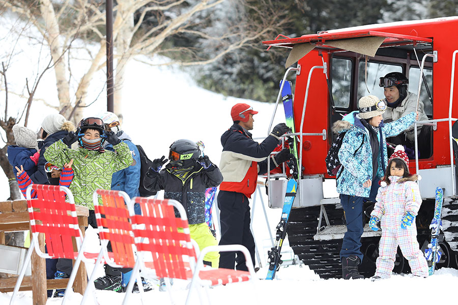 駐車場やバス停からは雪上車/スノーモビルで送迎
